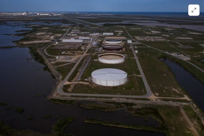 The Bryan Mound Strategic Petroleum Reserve, an oil storage facility, is seen in this aerial photograph over Freeport, Texas, U.S., April 27, 2020. REUTERS/Adre…