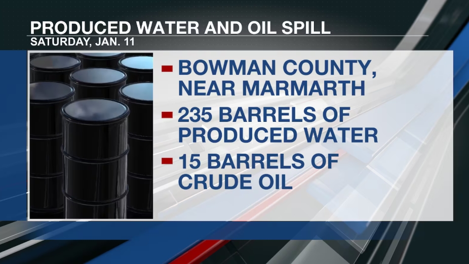 A malfunction in a well caused produced water and crude oil to spill in Bowman County.State regulators said about 235 barrels of produced water and 15 barrels o…