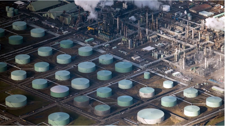 Storage tanks at the BP Plc Cherry Point Refinery near Blaine, Washington, U.S., on Friday, Nov. 19, 2021. Total U.S. oil stockpiles, including commercial inven…