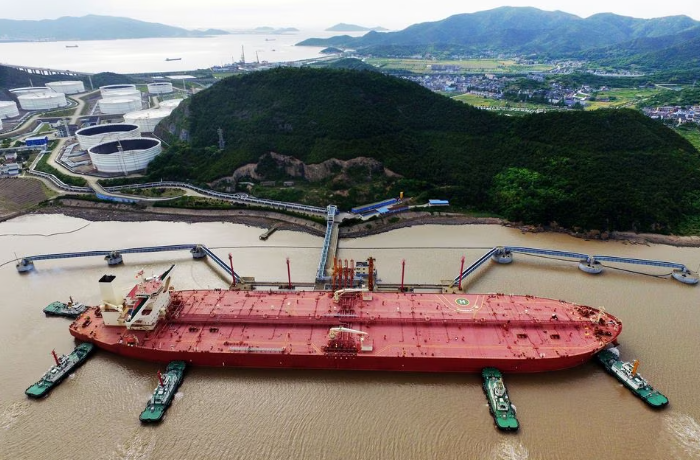 A VLCC oil tanker is seen at a crude oil terminal in Ningbo Zhoushan port, Zhejiang province, China May 16, 2017. Picture taken May 16, 2017. REUTERS/Stringer /…