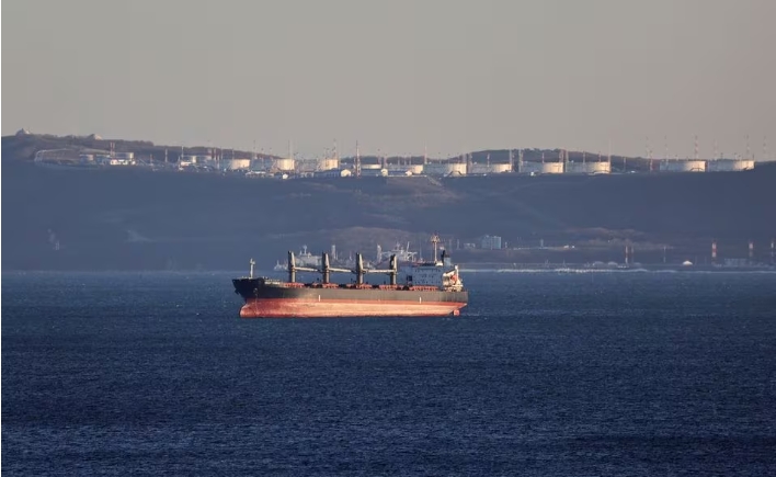 A bulk carrier sails near the crude oil terminal Kozmino in Nakhodka Bay near the port city of Nakhodka, Russia, December 4, 2022. REUTERS/Tatiana Meel/Files Ac…