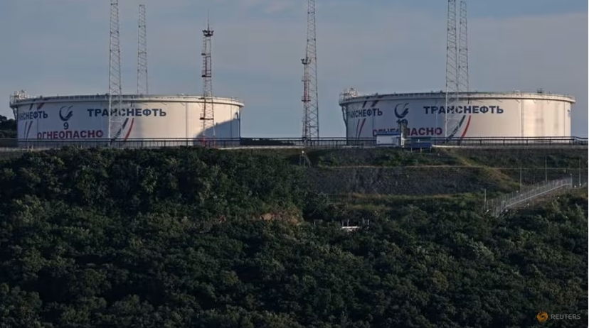 FILE PHOTO: A view shows oil tanks of Transneft oil pipeline operator at the crude oil terminal Kozmino on the shore of Nakhodka Bay near the port city of Nakho…