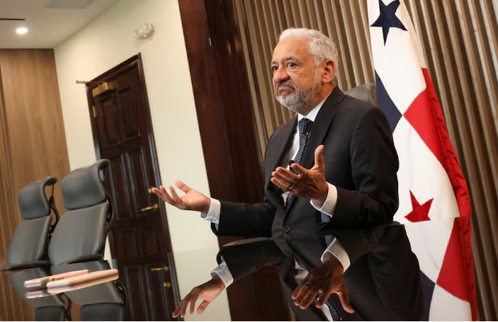 Administrator of the Panama Canal Authority Ricaurte Vasquez Morales gestures during an interview with Reuters, in Panama City, Panama, May 8, 2024. REUTERS/Ari…