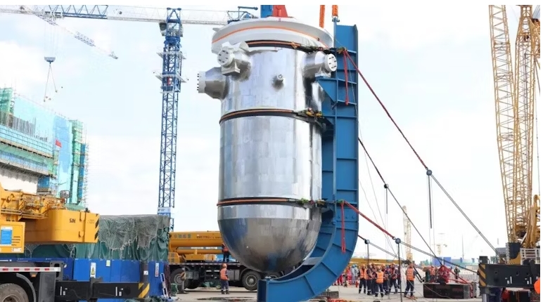 The reactor pressure vessel for unit 1 of the Lianjiang nuclear power plant has arrived at the construction site in China's Guangdong province. It will be t…