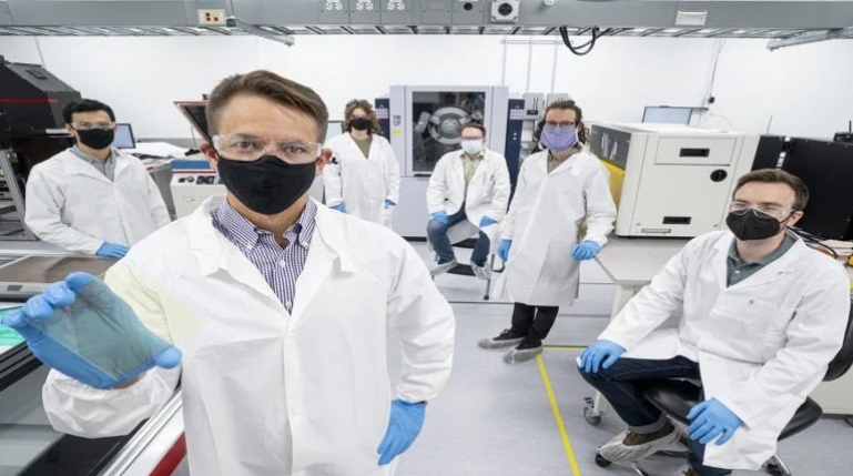 BlueDot Photonics develops cost-effective solutions to improve solar panel performance. The BlueDot team are pictured at their facility in Seattle, WA.Advanced …