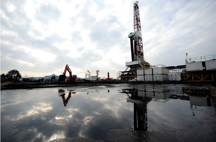 A shale gas drilling rig run by Sinopec is seen in Chongqing, China March 18, 2018. Picture taken March 18, 2018. REUTERS/Chen Aizhu/File Photo Acquire Licensin…