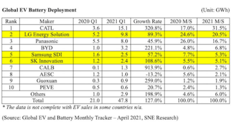 Market research firm SNE Research reported on May 3 that the global EV battery energy consumption volume was 47.8 GWh in the first quarter of this year, up 127 …
