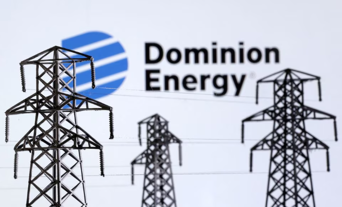 Electric power transmission pylon miniatures and Dominion Energy logo are seen in this illustration taken, December 9, 2022. REUTERS/Dado Ruvic/Illustration Acq…