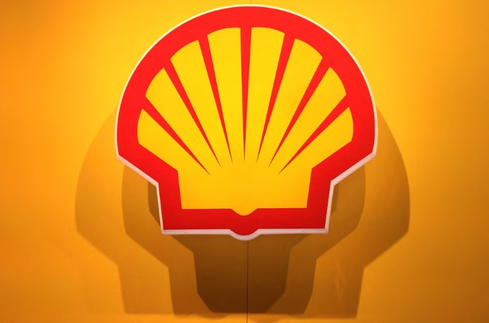 The logo of British multinational oil and gas company Shell is displayed during the LNG 2023 energy trade show in Vancouver, British Columbia, Canada, July 12, …