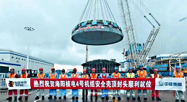 The installation of the uppermost section of the steel containment vessel has been completed at unit 4 of the Haiyang nuclear power plant in Shandong province, …