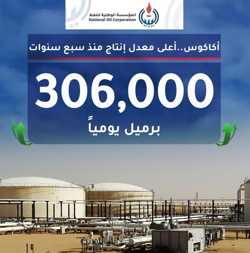 Akakus Oil Company recorded yesterday the highest crude oil production rate, which it has not recorded in seven years, as its production reached 306,000 barrels…
