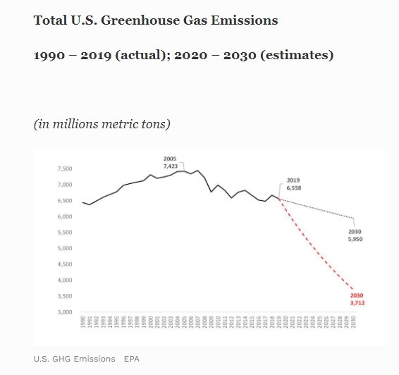 At the 2021 global climate summit, President Biden committed the U.S. to cut its greenhouse gas emissions in half by 2030.