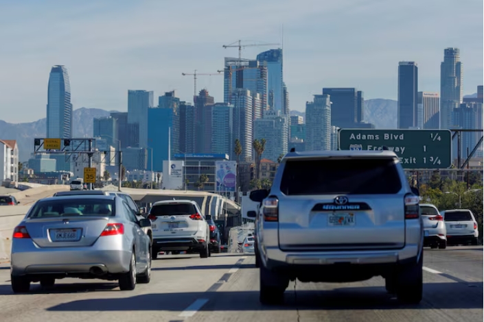 Traffic travels along a highway next to Los Angeles, California, U.S. October 11, 2019. REUTERS/Mike Blake/File Photo Purchase Licensing Rightsearly trade.Chrys…
