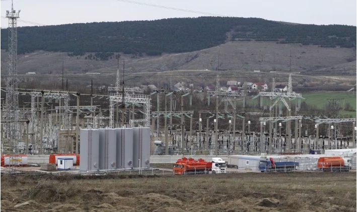 A general view shows the facilities of a mobile gas turbine generator, which was turned on due to recent power outages after pylons carrying electricity were bl