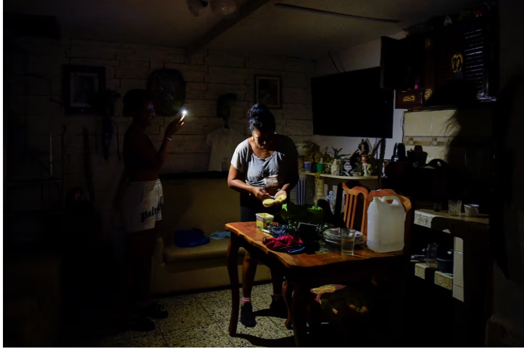 A woman prepares food with the aid of a cell phone light as Cuba is hit by an island-wide blackout, in Havana, CubaCuba plunged into a countrywide blackout on F