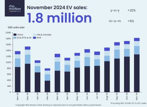 November 2024 marked another record-breaking month for EV sales with 1.8 million units sold globally according to EV research-house, Rho Motion. November overto