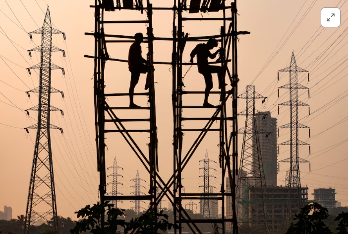 Labourers work next to electricity pylons in Mumbai, India, October 13, 2021. REUTERS/Francis Mascarenhas /File Photo Purchase Licensing RightsIndia is projecti