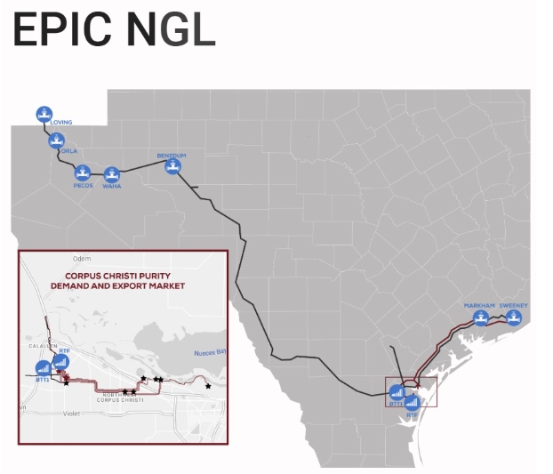EPIC NGL is a fully integrated NGL system that connects gas processing plants in the Permian Basin and the Eagle Ford to EPIC’s fractionation complex in R
