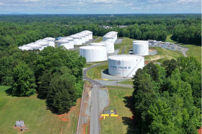 Holding tanks are seen in an aerial photograph at Colonial Pipeline's Charlotte Tank Farm in Charlotte, North Carolina, U.S. May 10, 2021.Colonial Pipeline&