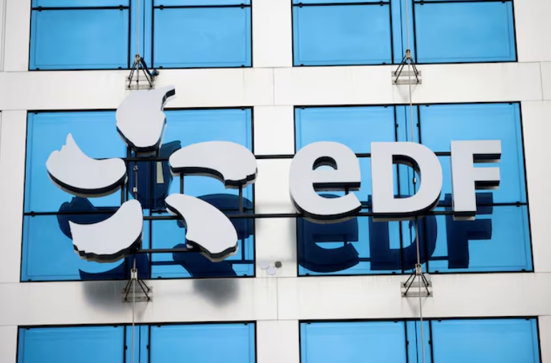 View of the company logo of Electricite de France (EDF) on the facade of EDF's headquarters in Paris, France, July 7, 2022. REUTERS/Johanna Geron/File Photo
