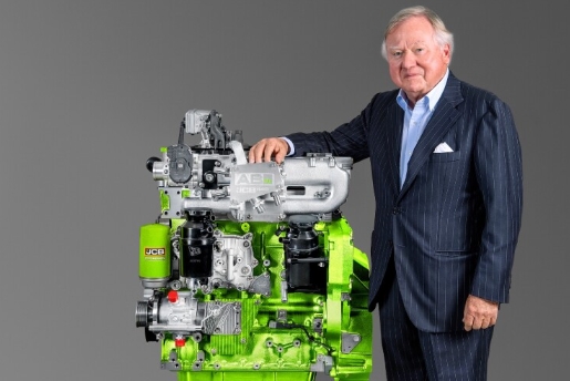 Anthony Bamford with his hydrogen combustion engineJCB claims to be the first construction equipment company to develop a fully working combustion engine fuelle