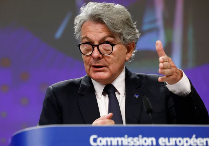 European Internal Market Commissioner Thierry Breton speaks at a news conference in Brussels, Belgium, September 19, 2022. REUTERS/Yves Herman/File PhotoWASHING